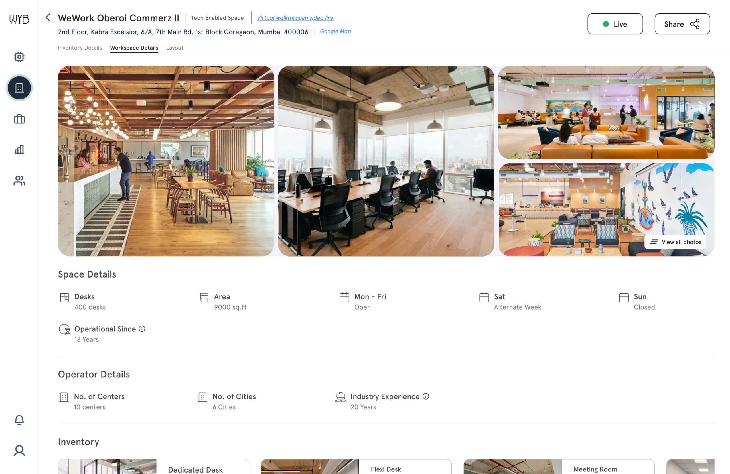 Get instant access to verified, live workspace listings with 20+ data points—no delays, no outdated data, no missed opportunities.